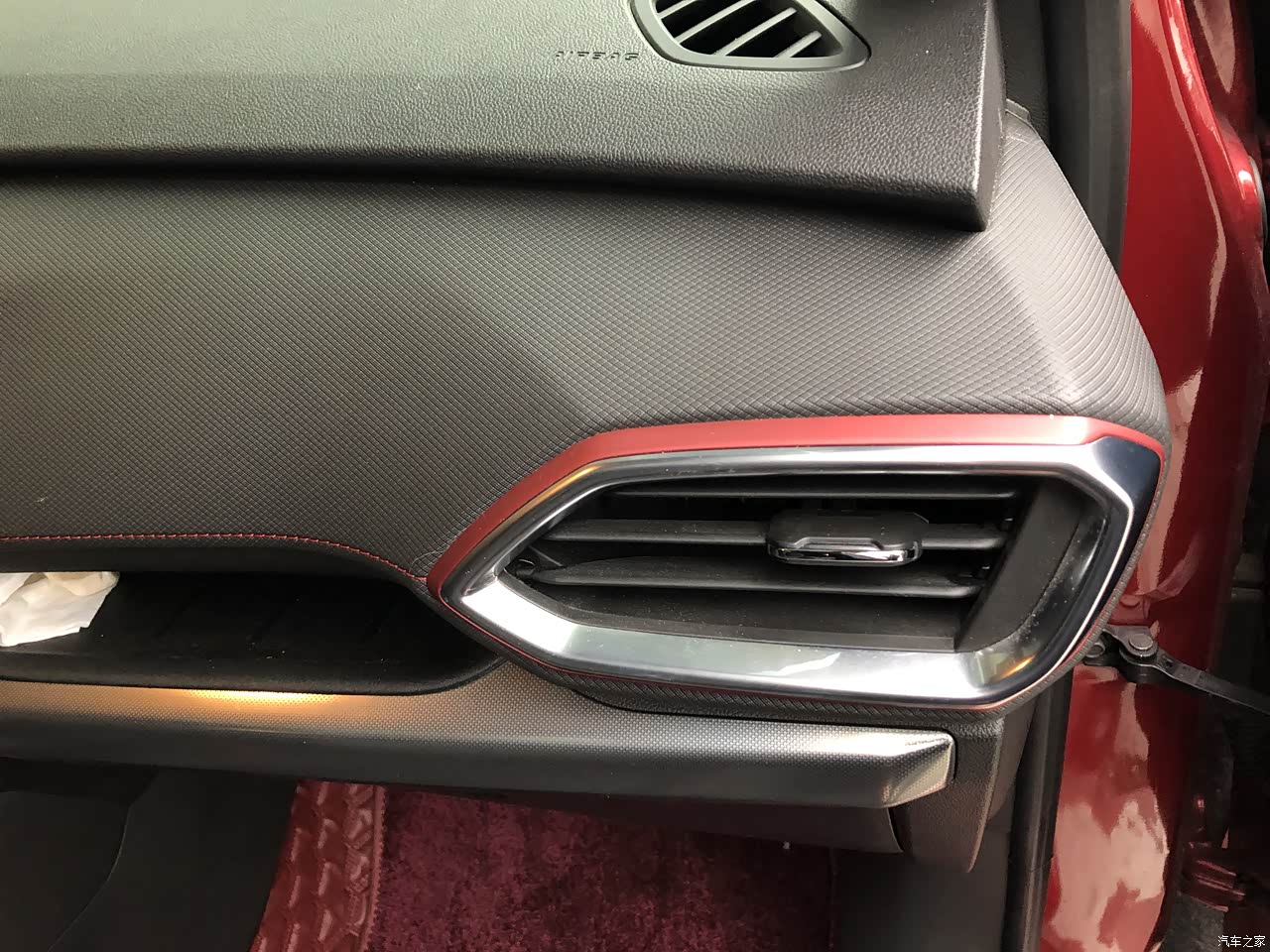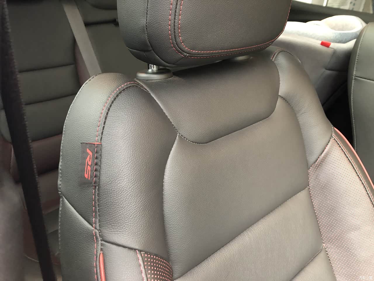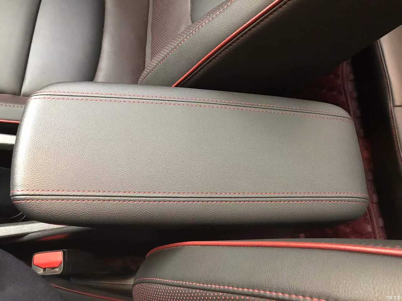 这个车的内饰还是有看点的,在空调出风口有一圈红色镀条,看起来让整个车都更年轻化。座椅上也做了RS标志的一个点缀,座椅和储物箱上都是红色走线,不是纯黑色,让车看起来更年轻不沉闷。
