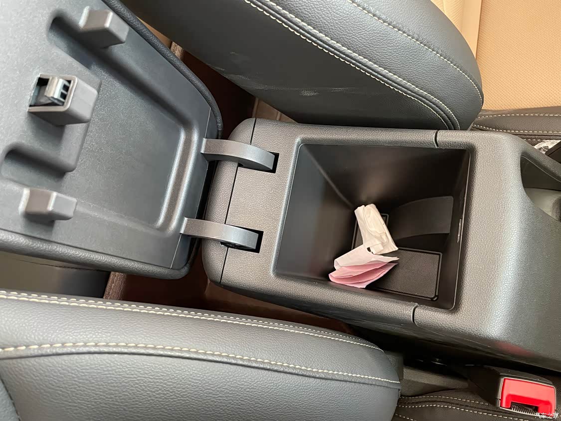 副驾中控下面那里有一个小盒子,可以平时放个小雨伞挺好的,因为平时下雨的时候雨伞收起来没地方放,这个可以放起来挺方便。