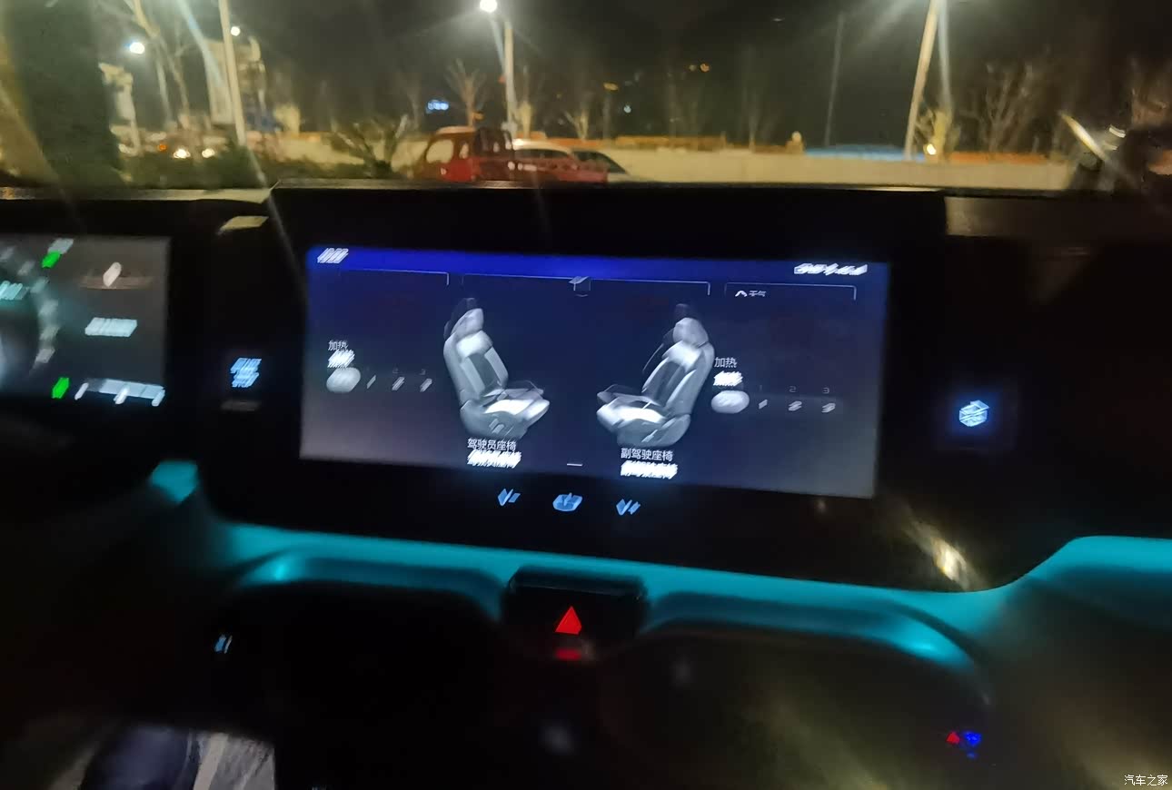 座椅还能加热哦,冬天屁股冷,就可以打开这个功能,车内的装饰颜色我比较喜欢,很清爽
