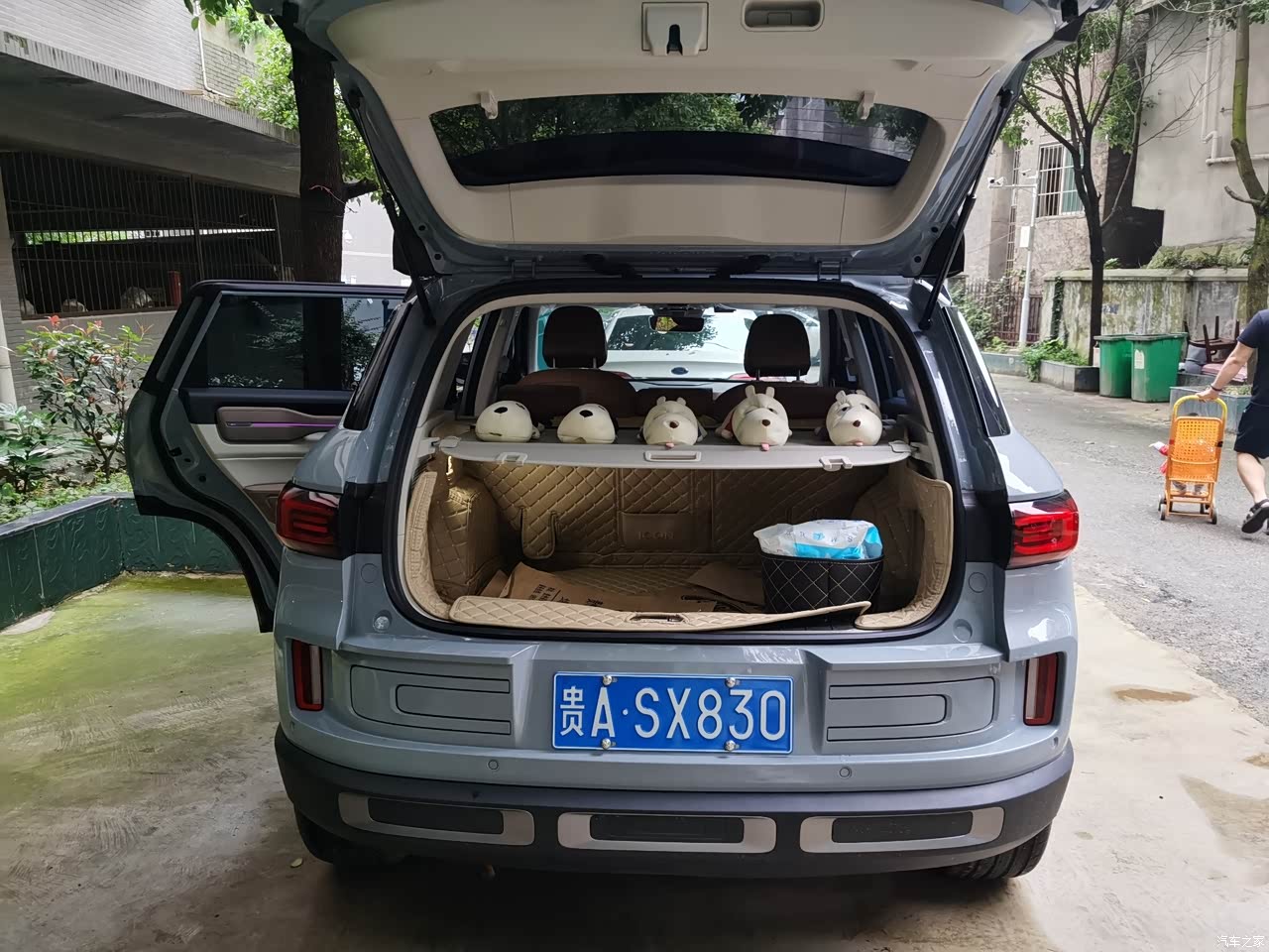 在用车快两年的过程中,有一点点不满意的地方就是icon车的后备箱有一点点的小啦,装一个行李箱就装不了其他东西了。后备箱门改为电动开关就完美了。