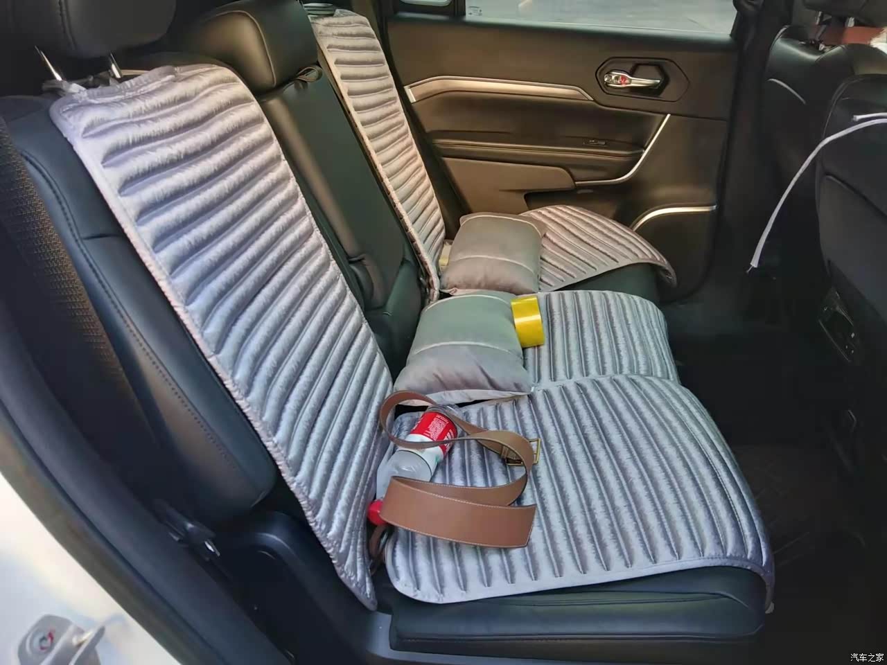 【空间】\n空间还可以,家里有小宝宝满载舒适性足够,尤其第三排座椅靠背在脖颈处很舒服。第三排还有气囊,充电器口解决孩子在后边玩手机很方便,累了第三排座椅可以放倒休息很狭意。