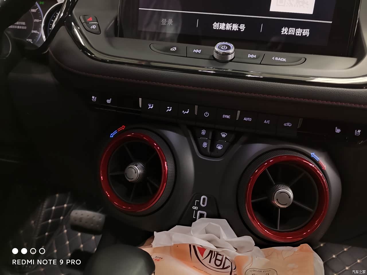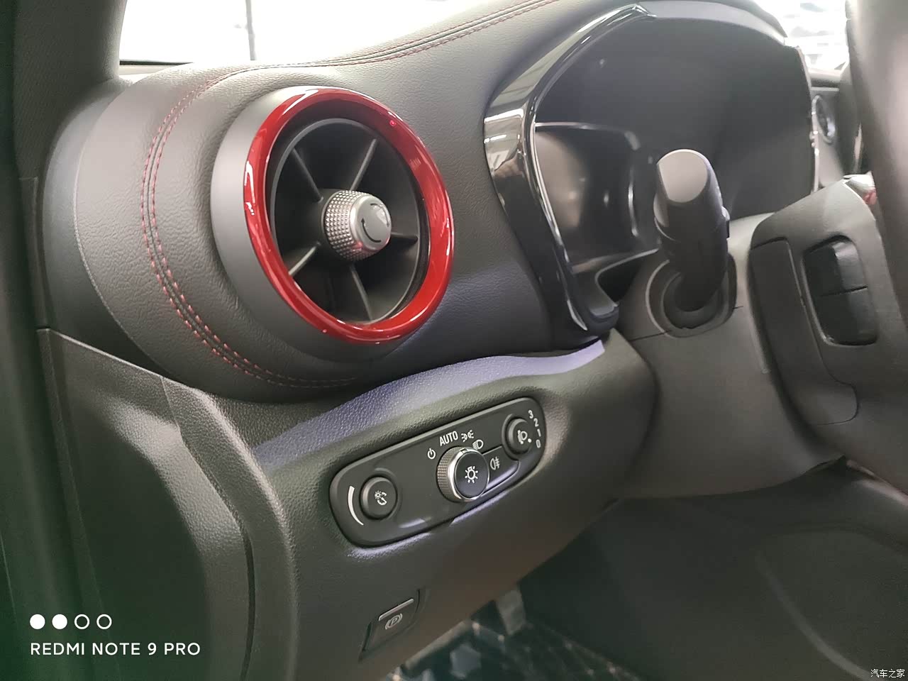 空调的样式我很喜欢,红黑搭配的圆形空调出风口,很个性。第二排带的的是可调节的独立出风口,第三排带的是独立出风口,头顶和脚下都有。