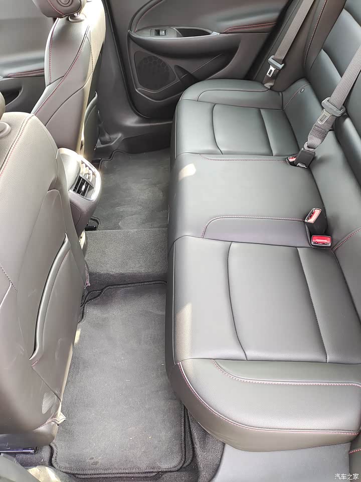 内饰的颜色还是很讨喜的,纯黑的内饰带有红色缝线的点缀,整体风格看起来也比较年轻时尚,中控大屏反应流畅,而且还有实体按键,操作起来非常的方便。车子的后排还有中央扶手,坐在后排放个水杯和小件物品还是很方便的。只是车子的内饰用料比较一般,而且新车还是有一点异味。