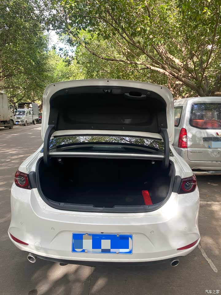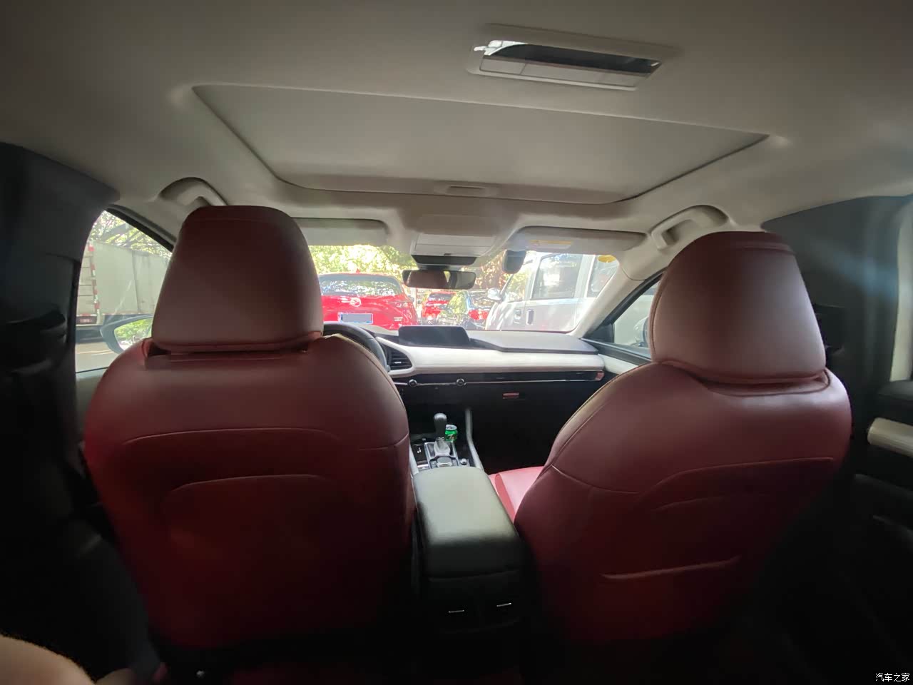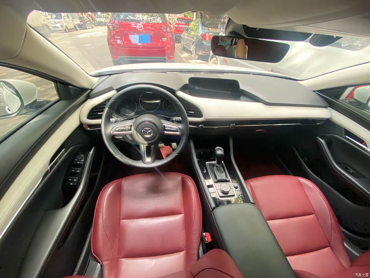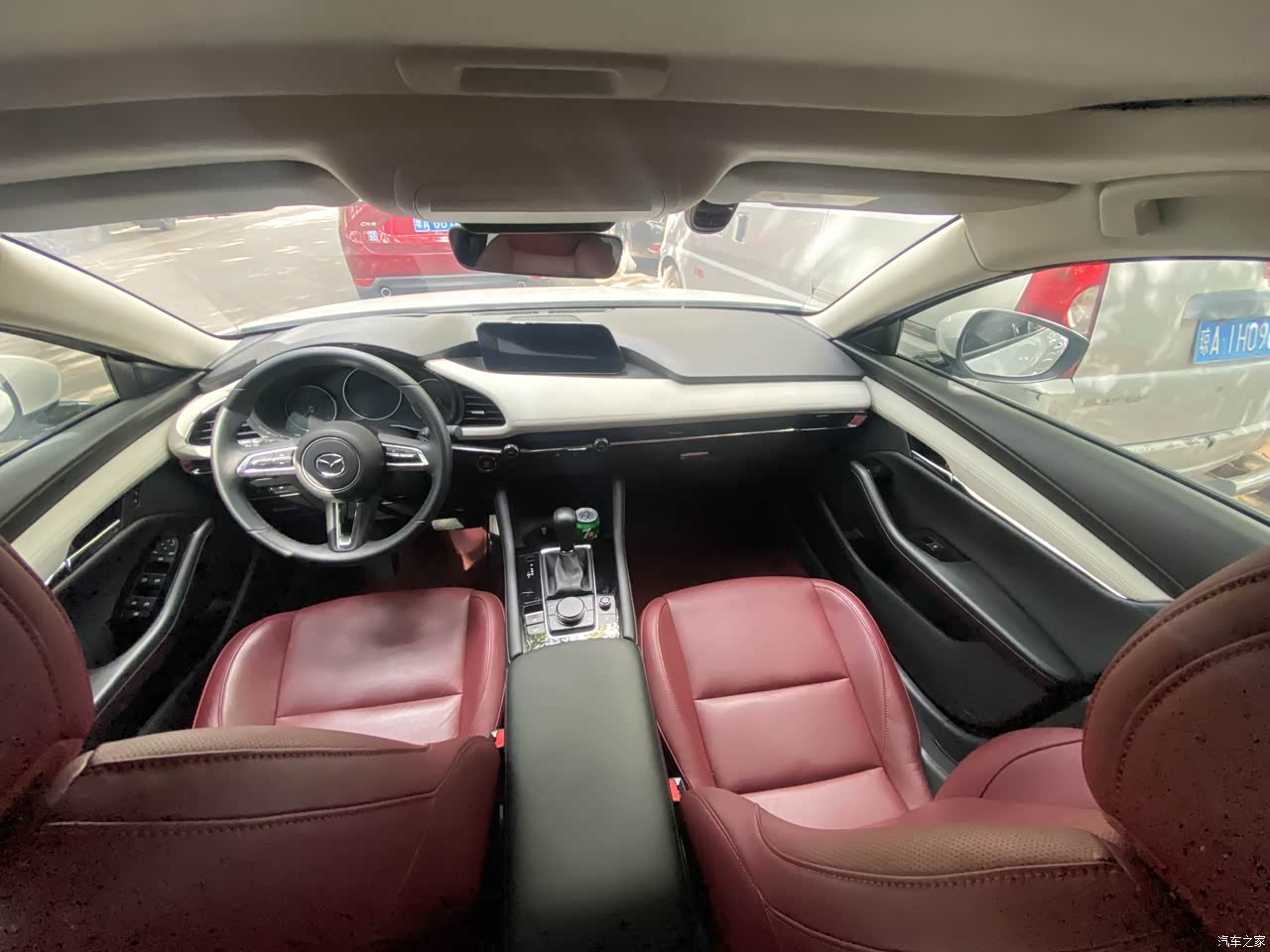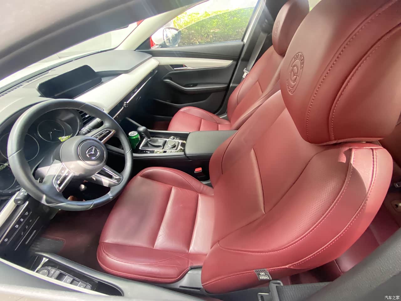 我买的是红黑皮内饰的,个人比较喜欢红黑搭配的这种感觉,显得比较高级有质感,用料比较厚道,其实马自达品牌在用料上在日系品牌里算是非常厚道的了。内饰的皮质,车灯的材质,以及在底盘上的用料都是相当的扎实厚道,不偷工减料。车辆行驶的时候有抬头显示,这样就不用在低头看仪表盘了行驶,