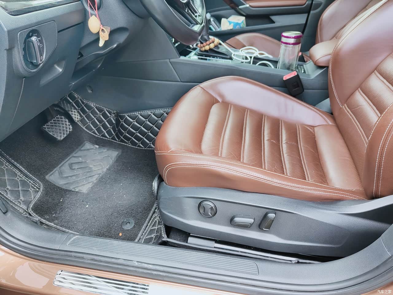 主驾驶室还是秉承大众系的风格,有点偏塑料风,可能是务实吧,毛巾或者鸡毛掸拍下就干净,容易清理。座椅拼接工艺不错,终于脱离太普通感。