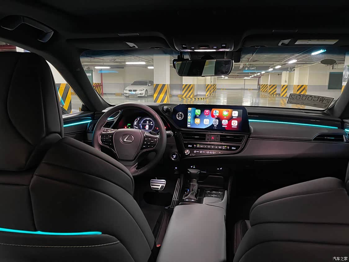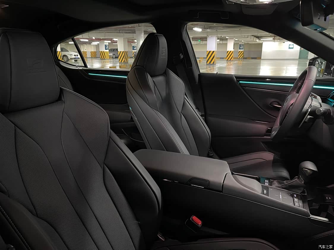 F专属晶亮白外观,F运动座椅,加强运动阻尼杆,矩阵式LED大灯,自适应的运动悬挂 . ES300H 50KM~90KM码这段驾乘体验太棒了,混动太过丝滑,比之前的B48的bimmer好很多,起步提速完全没有顿挫感. 选择了黑色的内饰,F的红色太激进,白色的爬不耐脏,其他配置的棕色米色太老气了「真老头乐」,后排平时用的不多但是基本够用,后备箱够大平时会踢球放大球包进去也都完全OK. 内饰整体来说基本符合自己审美,当然比BBA来说老气了一点点,用料也是该软的地方软考虑的比较周全. 目前油耗6.5上下,估计5000KM之后会再低一些吧.
