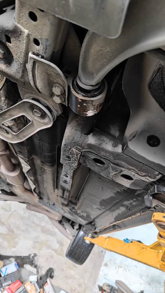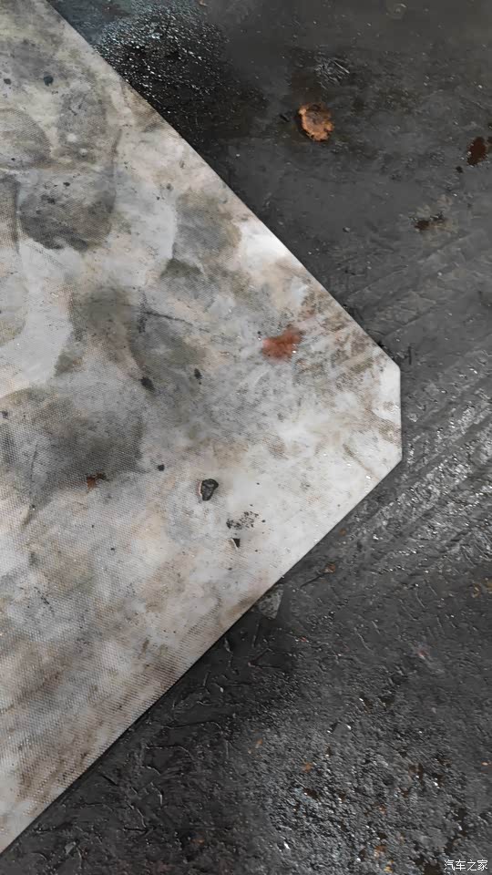把车顶起来也可以看到,底下有湿印子。停在家里,估计也漏了很久。