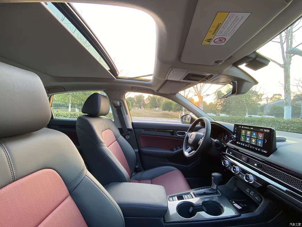 内饰比较普通了 但是红黑双拼看起来还挺sao 也耐脏,我爸爸的车是米色座椅 基本被牛仔裤毁了