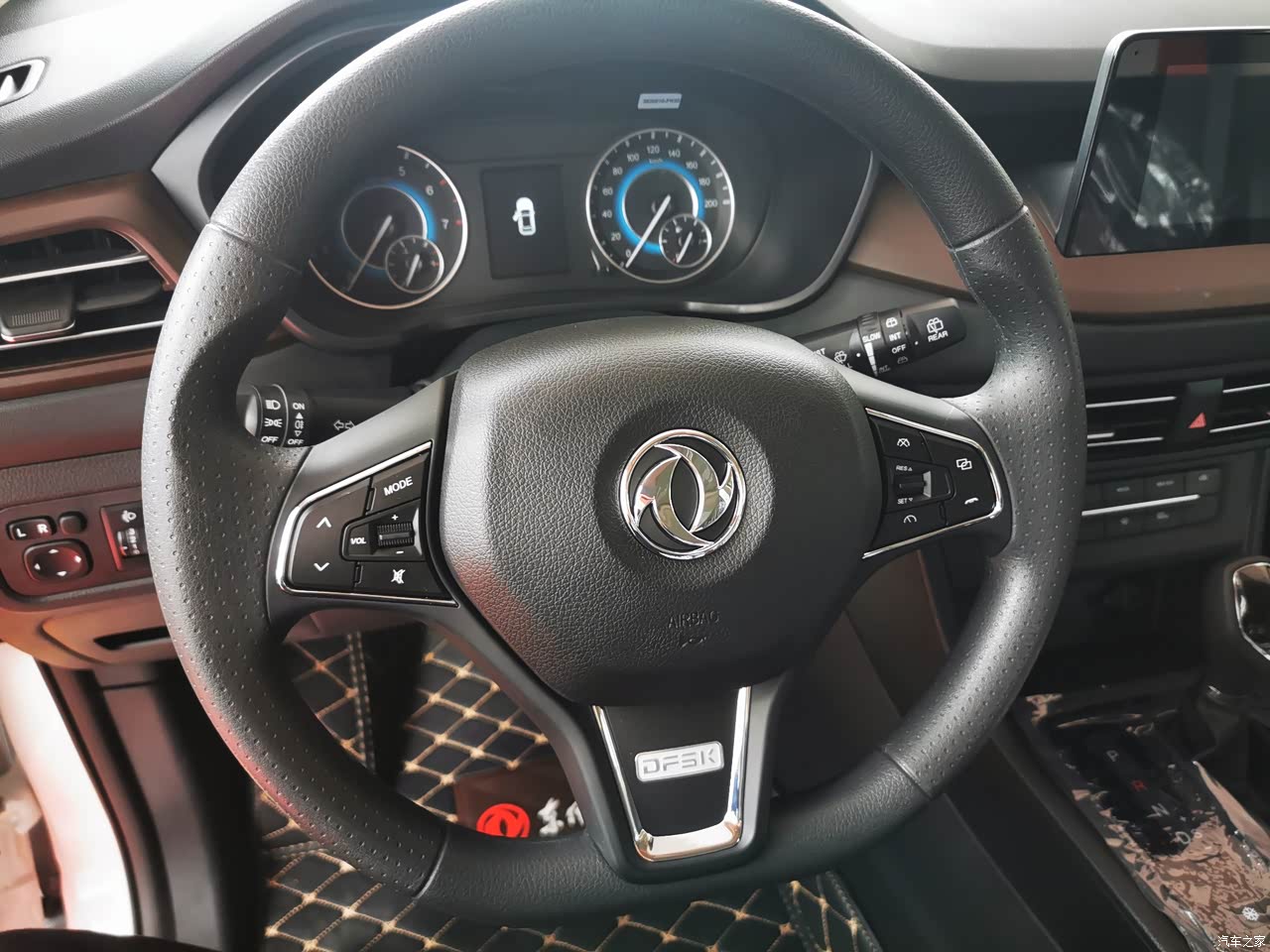 内饰:风光S560这款车的车内的用料真的很不错,多功能方向盘,方向盘是真皮包裹的,全车的座椅还都是皮质的座椅,这样看上去很有档次感,然后这个7英寸的中控液晶屏也是挺好用的,虽然屏幕小,但是功能丰富齐全,操作也反应灵敏。