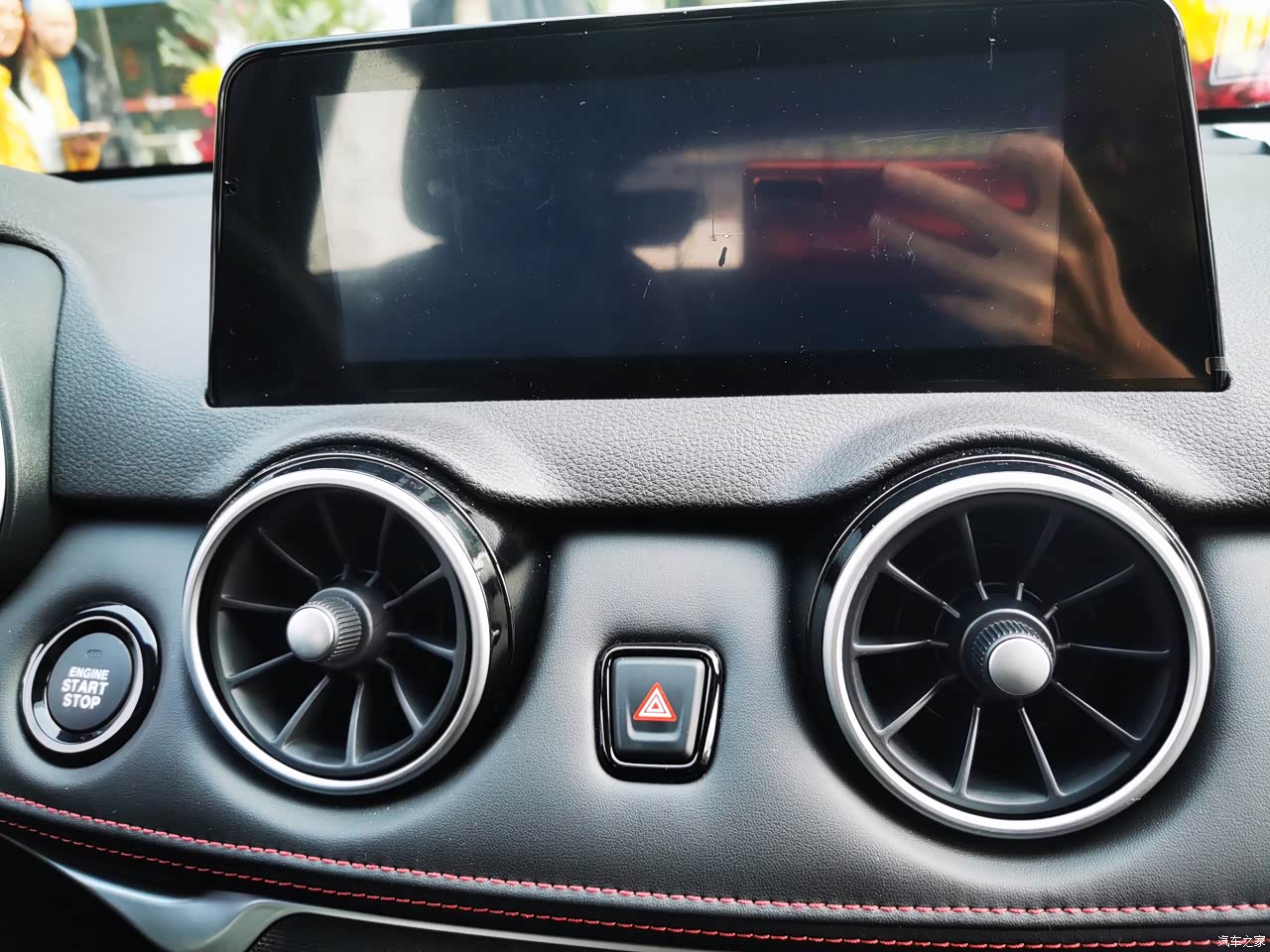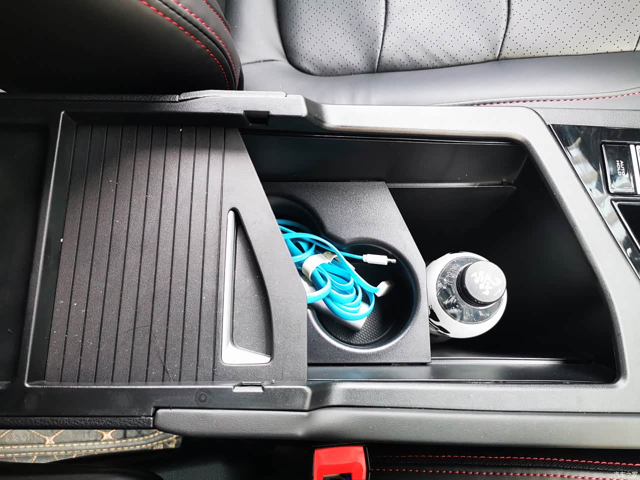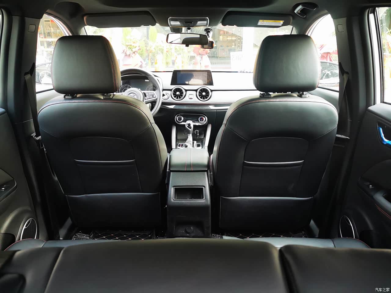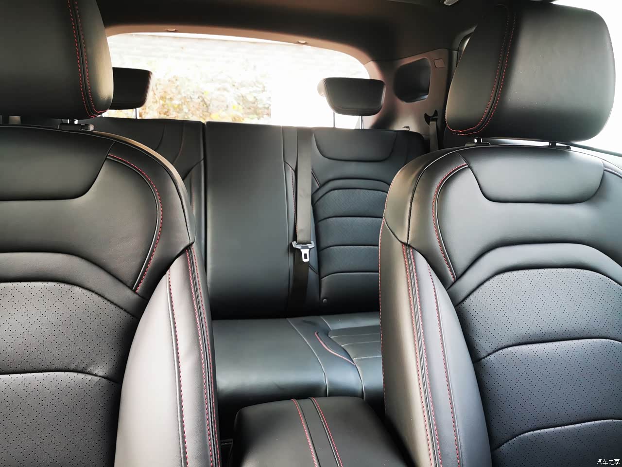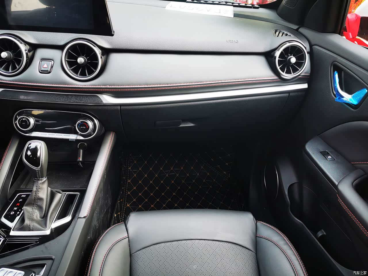 内饰的做工和用料的很不错,中控台采用了搪塑工艺,不是那种硬塑料,方向盘、门板、中控、扶手箱触手可碰的地方全是皮质包裹,感觉档次一下就上去了。黑色的皮质座椅,采用了红色的缝线,红色的缝线让这款车没有这么的沉重,多了一丝灵动。