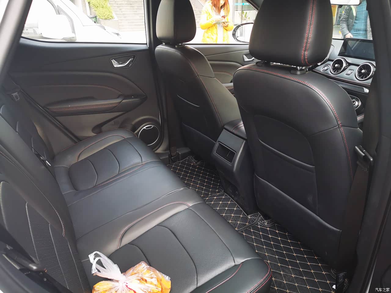 这款车舒适性还不错吧,第一排驾驶室和第二排座位的头部和腿部空间都还不错,皮质的座椅坐起来不软不硬的,支撑性也很不错。然后座椅还进行了打孔处理,使得座椅的通气性很不粗哦,特别是夏天很实用哦。中央扶手箱稍微短了一点,手臂放在上面的话,手臂不能全部托住。