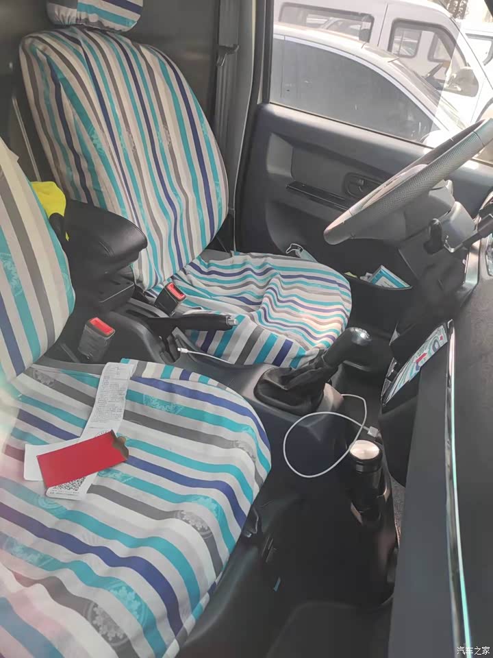 这个车拉比我之前的那个五零要长一点,还有就是这个是单排的,可以多装一排的货物,我装货呢,刚好能够多装一排,这个如果是两排座位的话,后面有空间是放不下货的,这个车后面的霍香就挺长的,可以放下很多的东西。