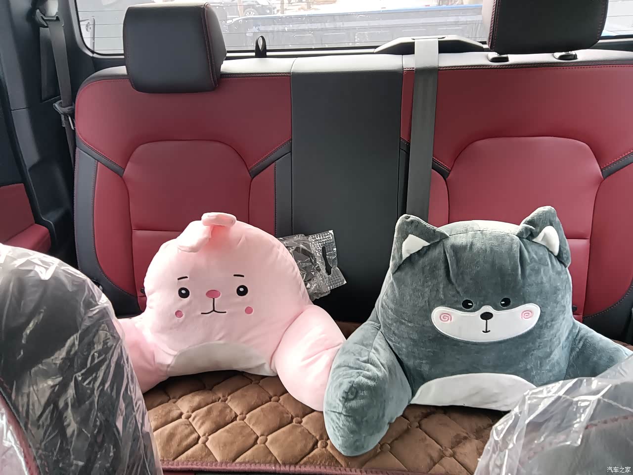后排座椅用红黑相间的皮质,很洋气,座位宽敞,坐三个大人都绰绰有余。