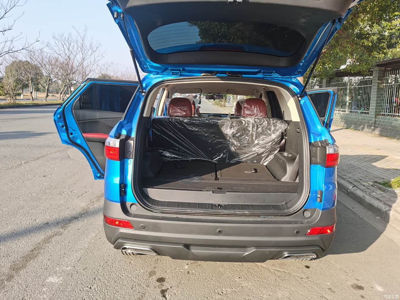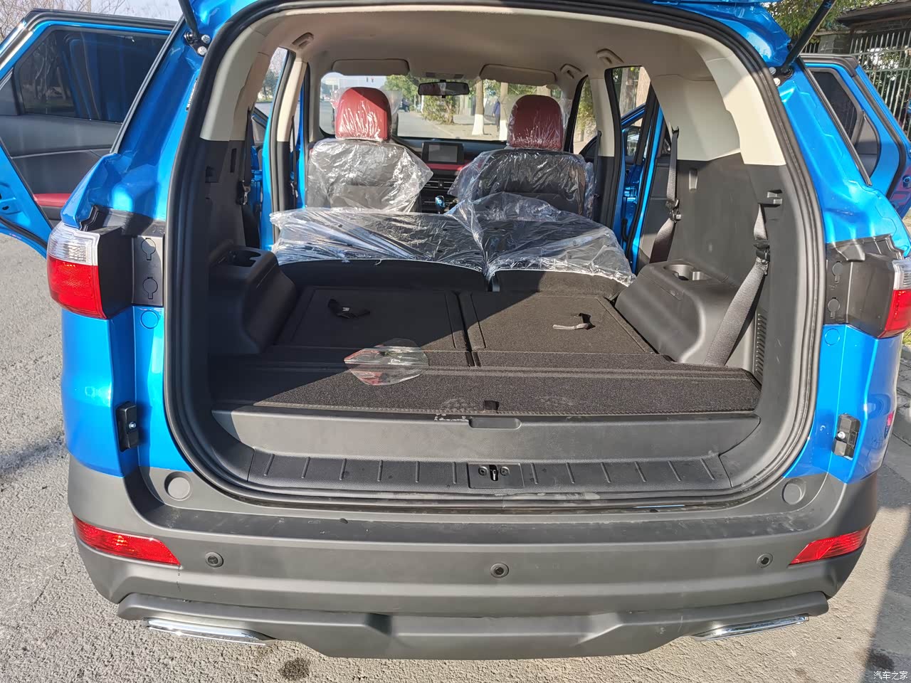 第三排空间座得少,一般要座的都是让小孩子坐在里面,我们家两个小孩,每次座在里面玩恐龙游戏都很开心。后备箱空间,我觉得放两个行李箱是没问题的,当然不能太大。但是如果把第3排放平那放大一点的行李箱或者是小孩的电动车,大件工具或者出去游玩放帐篷、烧烤架这些东西是完全没有问题的,都能放得下。