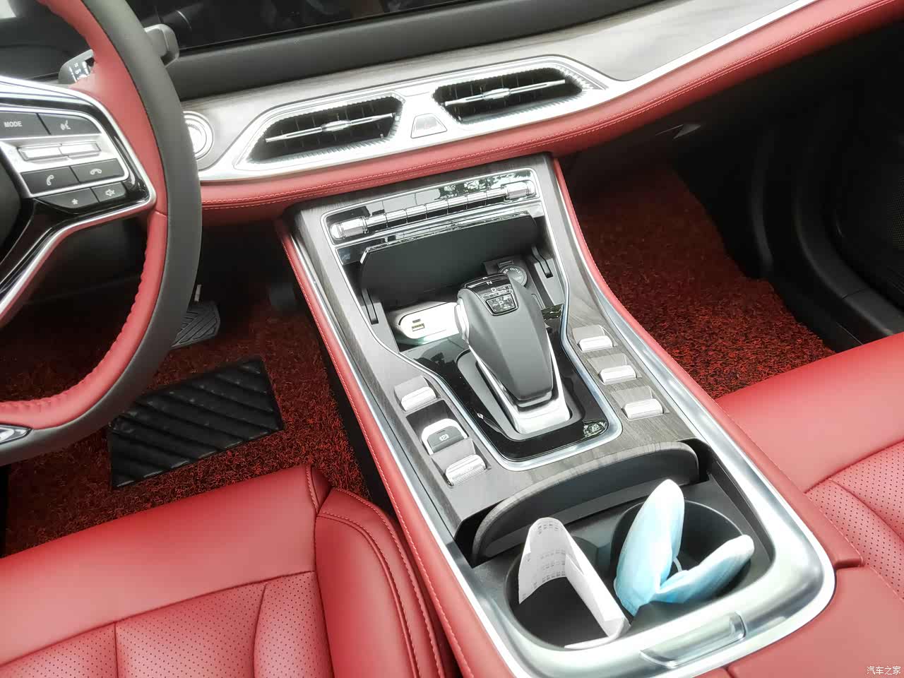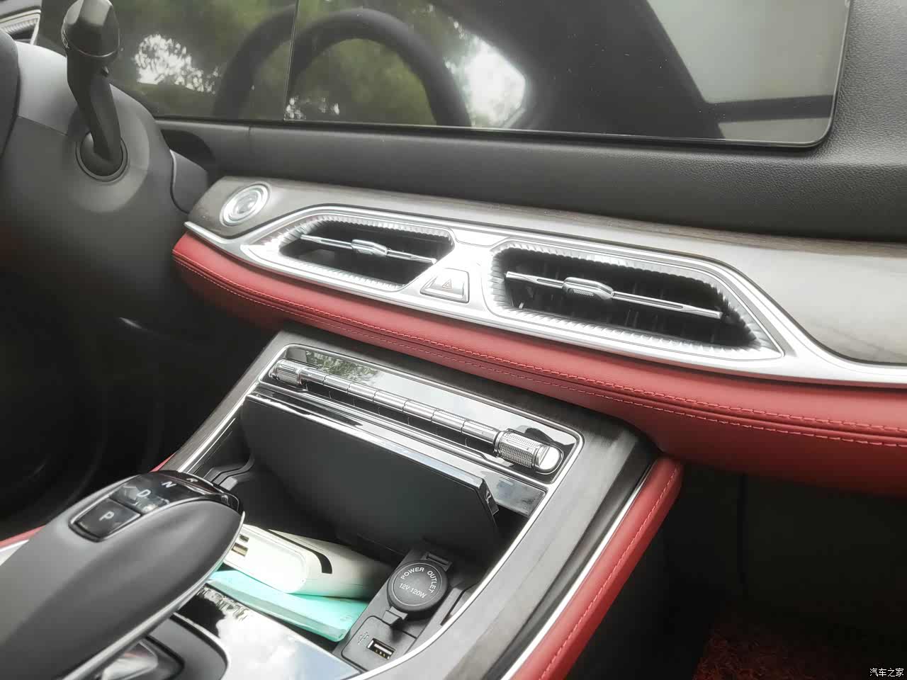 新580的内饰做得也不错,特别是整个中控,包括双联屏幕,还有方向盘的设计都很好看。档杆的设计感觉很科幻,科技感很强。有一点我比较喜欢的是,扶手箱以及前面的几个储物格都是可以盖住隐藏的,这就让整个车内看起来很整洁不杂乱。