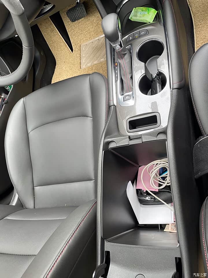 中央扶手箱够长,下面有个长口的小储物格,能把水果手机插在上面,或者放钥匙,制作的很巧妙。