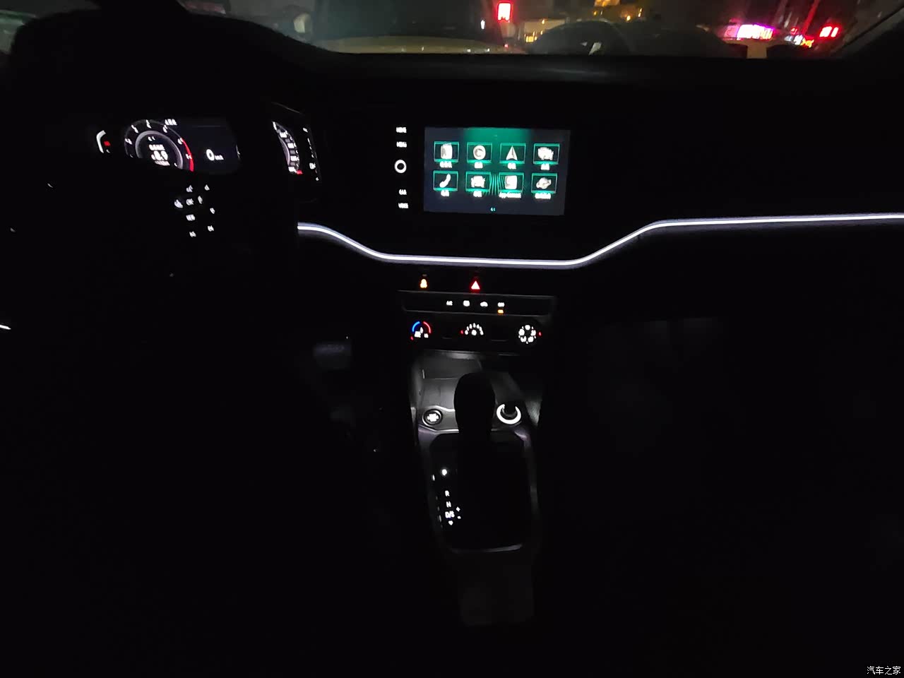 氛围灯是单色的,前排点位很多,中控储物槽有,门把手有,脚窝也有。后排啥也没有,只能自己动手安排上。