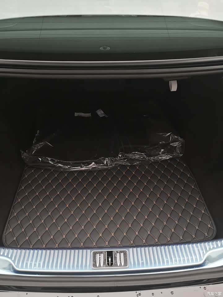后备箱深度可以,宽度受制于电动后备箱的拉杆,窄了不少,但是放两个24寸的行李箱那是没问题的,右侧还有固定灭火器的位置预留,挺不错的