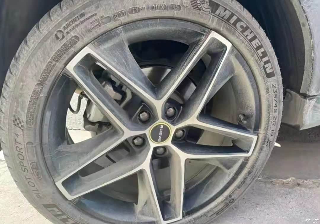 荣威rx5 2021款这款车的外观上,我比较喜欢的点是这个前脸设计,它的车标设计感十足,很高级,前脸排气孔也很时尚。但是它的车轮胎太丑了,这个车轮毂,大家自己品吧。