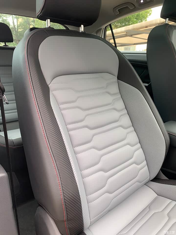 比较满意的舒适性方面,座椅的透气性不错,它是打孔皮质的面料,以后夏天开车也不用担心屁股这块闷热了。而且车内空调面积大,风速大,冬天开着暖气很足。