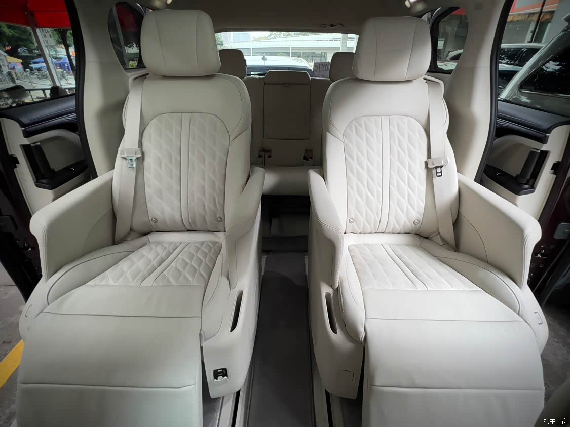 舒适性可以说是这台车最大的亮点了,第一排的座椅有通风和加热功能,座椅内的填充物软硬适中,做起来很舒服。第二排的座椅可以享受到飞机头等舱级别的乘坐体验,座椅通风、加热、按摩等功能都有,还有腿托支撑可以调节,再把靠背调的倾斜一点,坐上在上特别舒服。后排的空调温度也能独立控制,出风口的位置也比较合理。第三排的乘坐体验也不会差,座椅会稍微短一点,大腿的支撑会没有前面那么好,好在腿部的空间比较充足,富余的腿部活动空间一定程度上保证的了长时间乘坐的舒适性。第一排和第二排的车窗是用的双层夹胶隔音玻璃,再配合马牌的静音轮胎,使得车内的静谧性还是比较好的,行驶起来车内的噪音很小,家人都能很好的休息。车子内没有什么奇怪的异味,由于我这台是Avenir版的,车内还有Avenir的独特香氛,味道特别好闻,每次进到车内都像是回到了另一个家一样。