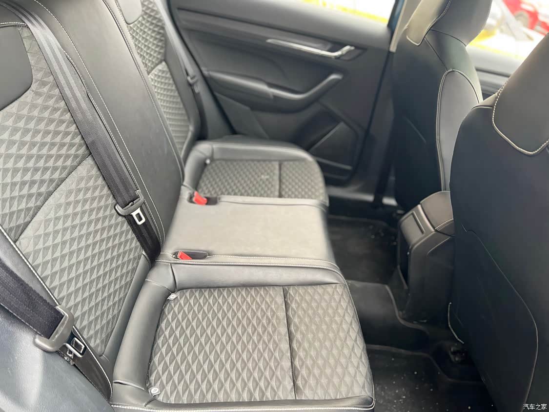 座椅内填充物厚实、质地柔软,采用织物/皮质混合搭配,坐上去非常的舒适。座椅是手动调节的,操作起来反应比电动调节的要更快一些。前排的座椅是一体式的,和赛车的座椅相似,这种座椅看上去非常的运动,两侧的包裹性也是非常好。后排座椅无论是舒适性和包裹性都比较到位,腿部空间算是很充足了