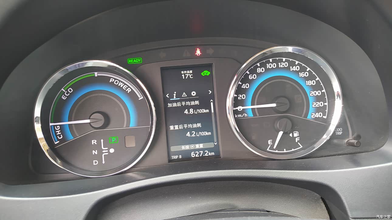 城市综合油耗走走停停,基本在4.5L/100KM。无论开不开空调都一样。要是堵车走走停停,油耗会增加,发动机会给电池充电。