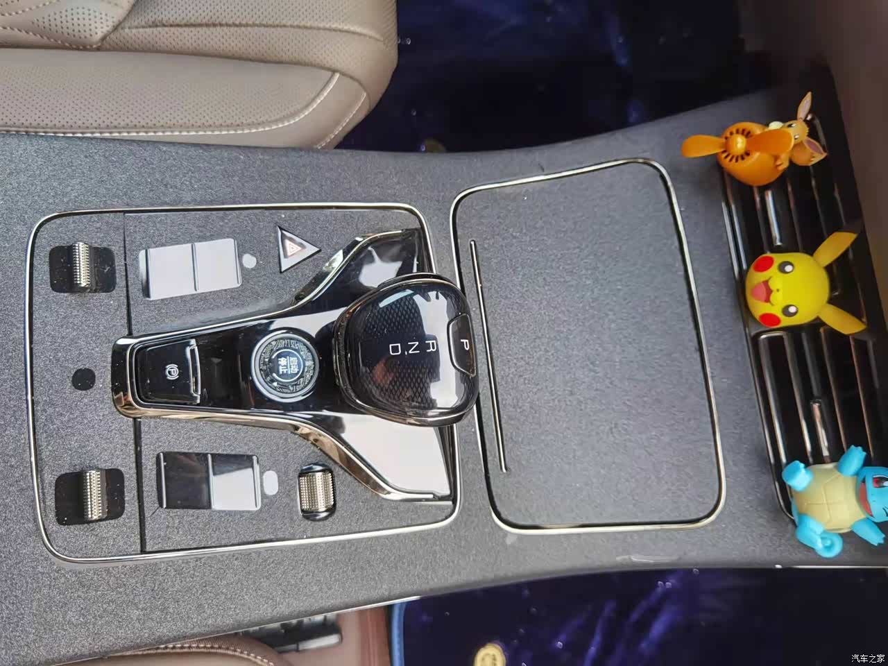 内饰最主要的中控大屏,辨识度特别高,出风口像极了西安大雁塔,很有中国风,与设计主调很搭配。一键启动后,车内灯光像流水一般在中控台、电子档把、仪表盘氛围灯等处流动,很有仪式感。此外配备了无线充电区域,还有防滑胶,真的是用心到极致。