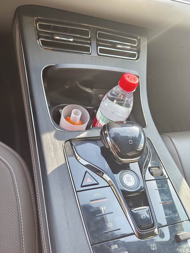 空间中控扶手箱、手机槽都设计的很巧妙,让人有些随处可放物品的地方,比如:前排杯架、后排杯架、前门板位置、后门板位置都有放水瓶的地方。