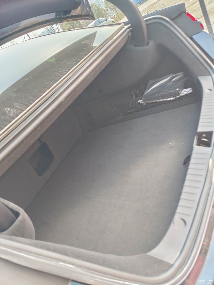 后排座椅不能放倒,但在座椅中间留下了小通道,后备厢空间非常平整,储物容积很大。