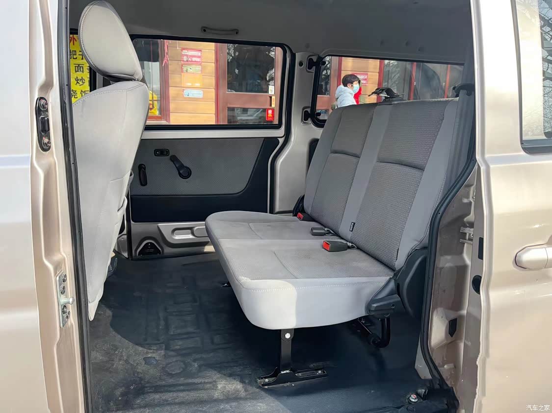 舒适性还阔以,面包车设计的比较扎实,钢板厚,虽然不怎么柔软但是拉货不怕伤着车啊,反正平时坑洼地方我就绕开,减速带就慢点开,隔音效果还不错吧,没有很嘈杂的声音,发动机工作的声音也正常,发动机就在座椅底下。所以能听到一点不过不大,座椅很软舒服,这个价位已经非常可以了,没什么要求的。