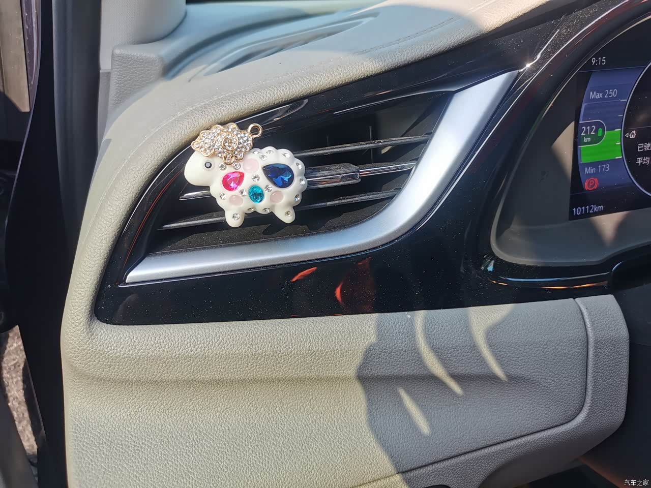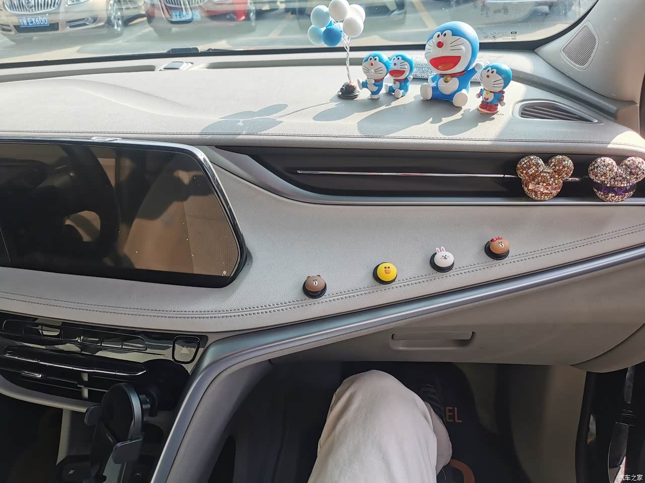 车内除了座椅是米色的,其他的大部分都是灰色的,搭配起来很好看,再加上一些小装饰,看来更童心了