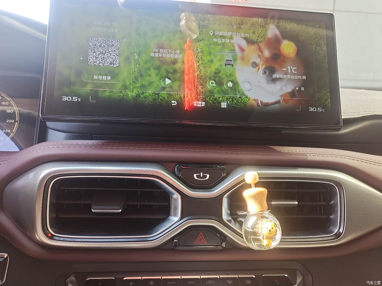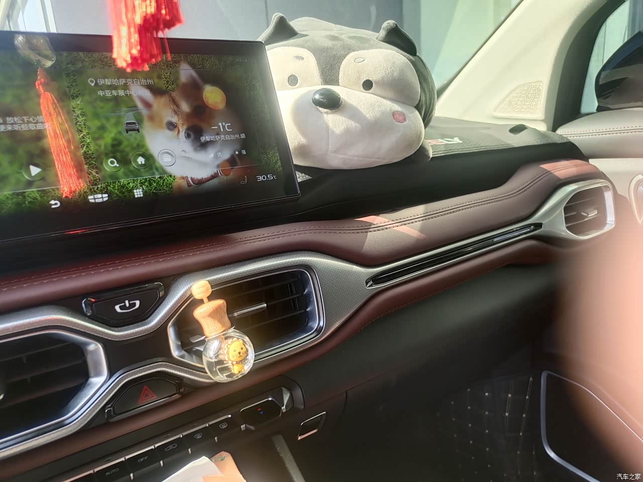 我感觉这个车的内饰真的很完美,一个大漠中内饰特别适合我,我也偏向于喜欢这种棕色的颜色,而且整车坐里面有感觉不压抑。而且这款车带的风油灯哎,它这个氛围灯要吐槽一下,因为它这个氛围灯没有那种呼吸式的,只能就是一种颜色。只能让一种压缩就感觉有点鸡肋他这个氛围灯别的地方的话感觉都很不错而且它这个屏幕给我的感觉也特别舒服,看着