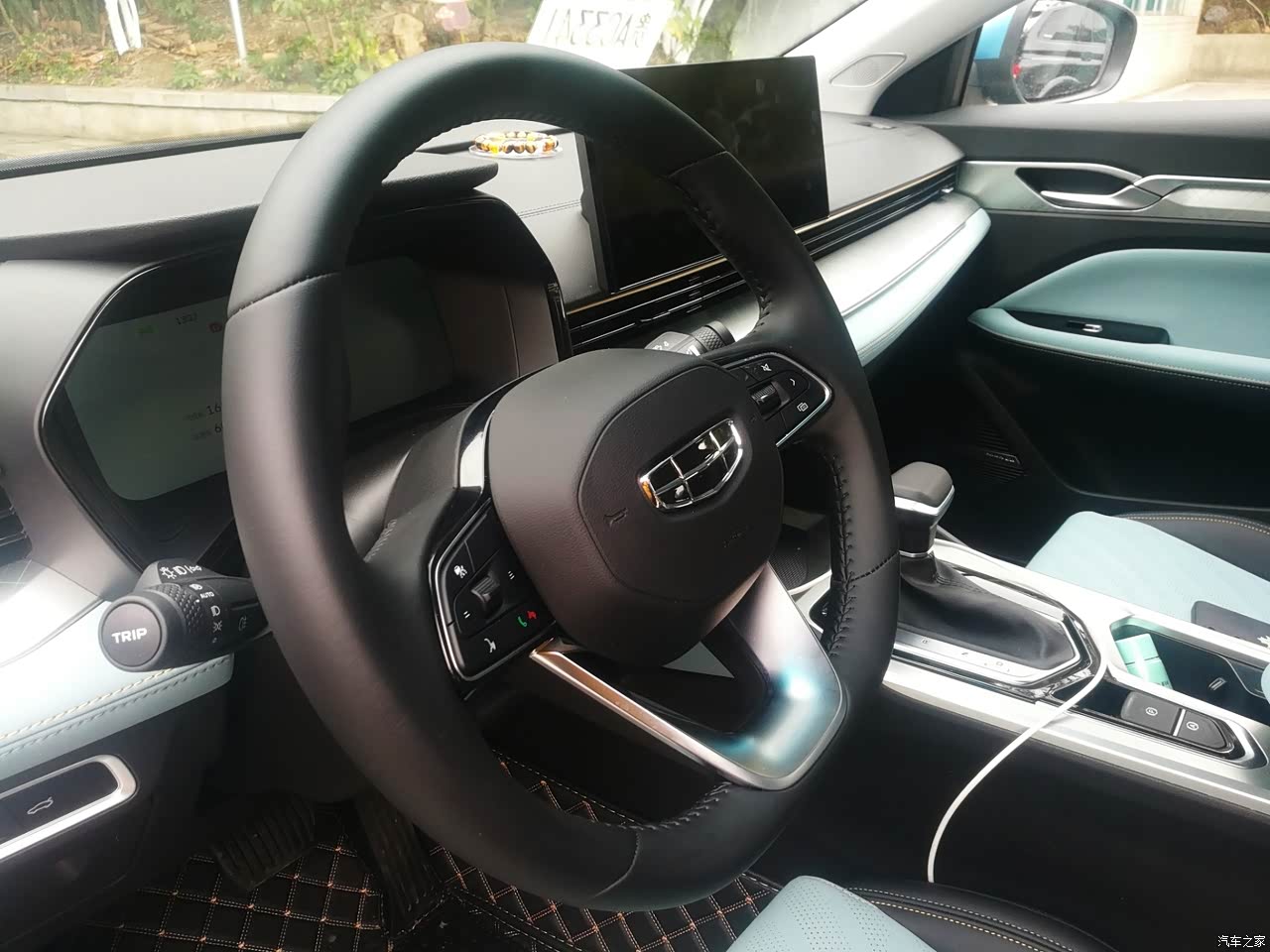 外观上帝豪L有着独具一格的设计,能量风暴的新设计风格,矩阵前格栅看起不仅设计独特,犀利的LED一体式大灯炯炯有神,硬朗的腰线贯穿前后车身,小溜背的尾部看起很顺畅,尾部多线条看起有层次感。 内饰上的视觉很新颖,丹青兰撞色搭配炭纤维面板,有种清新的感觉,在用料上也有档次,手能触摸到的地方都是软质材料,仿皮的座椅摸起很有质感。 配置可以说是齐全,谈得上应有尽有,我是顶配至尊型的,这段时间的驾驶发现了很多功能,其他功能不在一一的介绍了,可以参考我的提车作业,我最喜欢的还是自适应巡航功能,高速上可以轻轻松松的放松自己的黄金右脚。 再来继续说说空间,2700mm的轴距让后排更宽大,坐在后排可以拍各种姿势,我170身高、150的体重坐在里面膝盖离前排还有两个拳头的位置。驾驶室比较方便的是电动座椅,想怎么调就怎么调,前排空间的包裹性很好,家用足够充足。 经过几天跑600公里的行驶,油耗还是可以的,看了一下综合油耗,表显百公里油耗6.3,这个应该是正常的油耗吧,在现在油价的背景下,当然能省一点是一点,会继续练出一身的黄金右脚。 动力方面搭载1.4T的涡轮增压发动机,这个动力还是足够的,毕竟141的马力,超车就是轻轻松松的事情,稍一加油,动力很快就响应了。变速箱是模拟8速的,加油比较平顺,在操控上也是稳稳妥妥的,电动助力的方向盘速度慢的时候相对要轻盈些,速度快的时候稳住些,手感也很好。 底盘的稳定性直接决定整台车的舒适度,这款车的底盘在高速遇到急刹的情况下,没有任何跑偏的感觉,过烂路的时候,也不会有松松夸夸的感觉,悬挂也比较给力。静音做得也是相当的到位,除了有点胎噪外,坐在车里很少能听到发动机的噪音,这样的静音表现让我很意外。