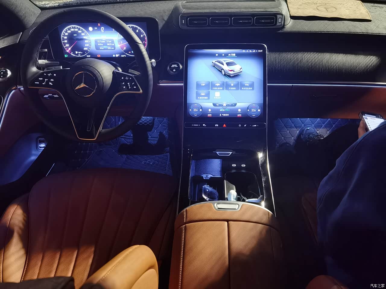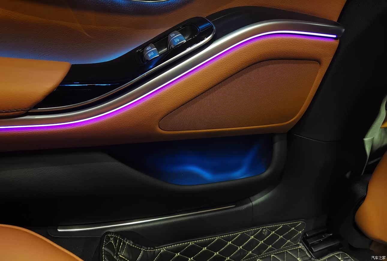 中控大屏简约大气,反应很灵敏,独立出风口B格满满,氛围灯就不用说了,花里胡哨的应该没人不喜欢。肉眼可见的地方都是真皮,真正做到了豪华二字。音响标配的,不知道啥牌子,反正听起来感觉还挺棒的。