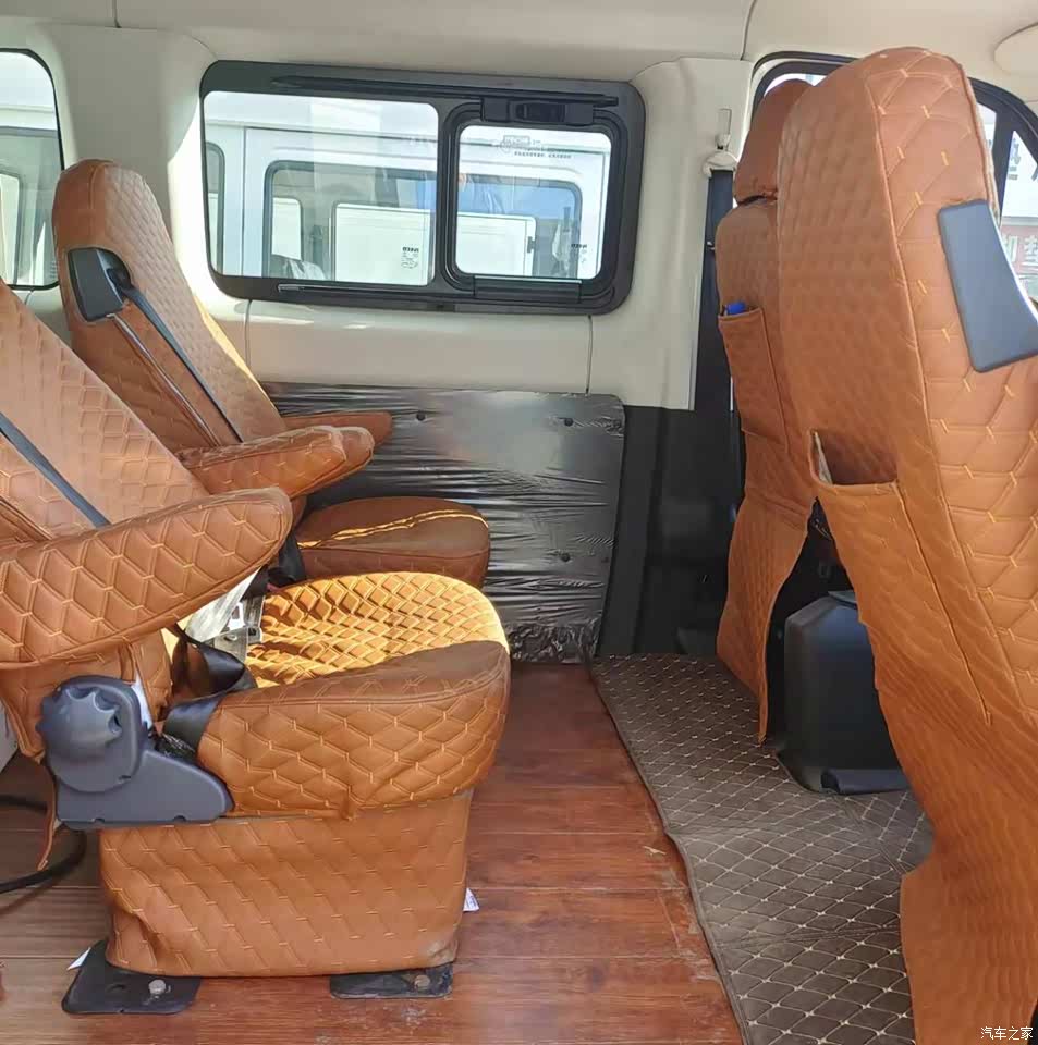 座椅是织物的,很软,坐着舒服,跑长途也不会累人。后面有打算加个滑轨再把那两个座椅换成航空座椅,舒适度会更好。