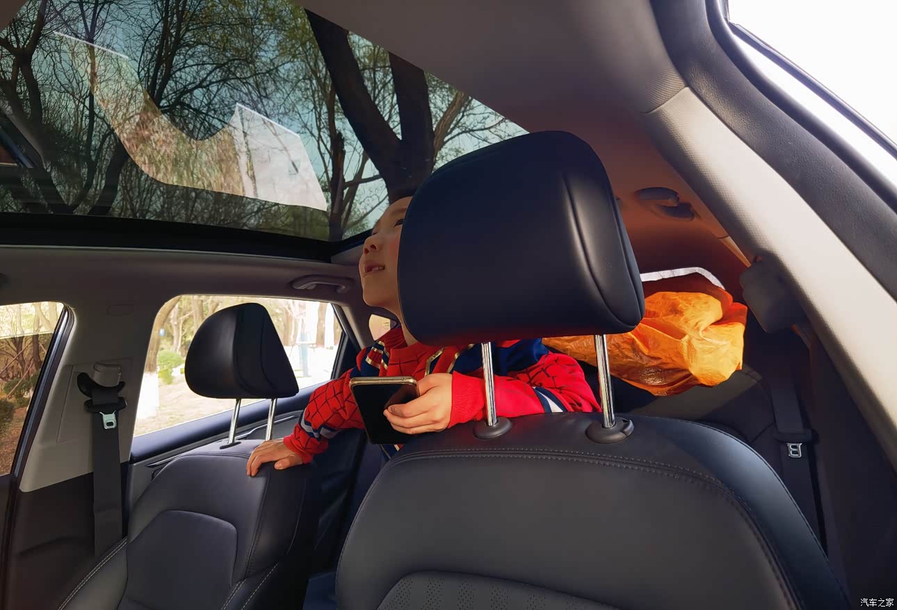 全景曲面天幕,车内不闷,小孩也喜欢,白天能看外面,晚上能看星星⭐️,周内上下班有时候想一个人静静就开车去河边打开天幕,调整座椅,躺着看天空,也很惬意。