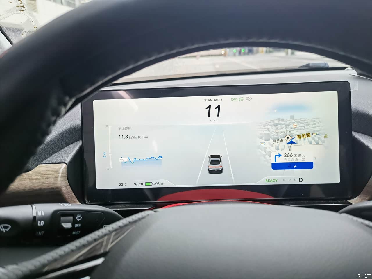 方向盘指哪打哪,轻重可调,能量回收有3种,高中低。高能量回收,收电门减速明显。还有一种单踏板模式,熟练后了减少刹车使用频率或不使用刹车。