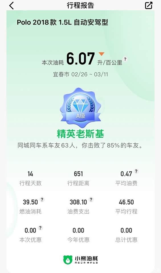 • 【初衷】与车友分享真实车主三年左右的用车经历和感受。交流用车经验,也为准备买二手polo的准车友们提供参考! • 【外观】仁者见仁智者见智,不予置评。这玩意主观性太强,说不出哪里好看,也指不出哪里丑。个人觉着顺眼耐看。对比了飞度gk5、致炫和威驰FS,个人觉得侧脸和屁股都比他们好看!(当初压根没去看国产A级轿车,现在有些后悔……当然这都是后话,人生第一辆车懵懵懂懂) • 【内饰】简单粗暴用两个字概括——“牛棚”,可能我最近两年开其他车多了,涨了些许见识,见了点世面。可笑的是当初居然完全能接受,坐进车内,能看到的,能摸到的几乎都是硬塑料,当然座椅是软“织物”。 • 【配置】四个字:“几乎没有!”传统炮筒仪表盘,左侧转速表,右侧车速表。中间一小块屏幕,固定显示着温度、时间、档位和燃油表,注意是固定显示的,没有其他可显示的内容,也调取不出其他显示内容!达到保养里程的时候会出现一个白色的小扳手🔧,伴有高音调的“滴”声提醒。令人意外的是,它居然給你配了“后视镜加热”,雨天非常方便。 • 【空间】A0级车,除去飞度会变魔术,就不要谈空间了。身高达到170cm,坐后排就跟坐小板凳一样一样的,后排不是平的,故意倾斜了一定角度,目测倾斜角20°左右。 • 【可靠性】到目前为止,跑了五万七千多公里㎞,正常保养,没遇见任何闹心的问题!非要说的话,提车3个月左右,误报了两次EPC故障,EPC故障灯亮了,黄色的灯。开不走,急坏了,断电再拧钥匙自检的时候又自动消除了,具体原因至今不明! • 【用车成本】我可能爱瞎研究,把车开回来的第一天兴奋得睡不着觉,当天晚上把说明书和保养手册📔认真翻了一遍,还做了笔记!并制成了一张表,打印出来了,放车里。这也为我后来去4S店保养避开了很多坑,售后接待的小姐姐很漂亮,妆也化得非常不错,2万公里之内建议我清洗节气门、除积碳等等,我拿出那张依据说明书和保养手册制作的那张表,上面没有的项目,一一拒绝了!自认为没有人会比造出这辆车的更懂它。没记错的话,我只去4S店保养过两次,包含首保在内!真正让我不进4S店的原因,并不是叫我增加额外的保养项目,也不是单项收费昂贵,而是轻视便宜车车主!毕竟我这是上汽大众家最便宜的车,我把车停那,钥匙交给售后人员,就坐在休息区玩手机了,练了几局王者荣耀,浏览了一些新闻,学习了一段医学视频,一小时四十分钟之后,我车依旧在那未动,那天人并不多!!!瞬间明白了我进车间保养的时候,售后人员指挥我停🅿靠边位置的深意了。敢情方便后来的车主先保养,不过也是,他们车贵,身份也更尊贵,我还这么年轻一看就不懂人情世故。此后……再没去过4S店!第二辆车应该也不会选这家,自己网购旗舰店保养品,曼牌马勒kn安索嘉实多ngk索菲玛等,都用过!找个汽修店工时费30~50元完事。坏了我自个认,出了问题大概率4S店不会管,甩锅!我不可能过去送钱还买不开心! • 【动力】推重比0.09,升功率54。DLX大众EA211电喷发动机,再配个爱信低端的6AT变速箱,降档太笨,传动效率也不占优势;不把档把掰到底挂S档➕油门干到底,是没有推背感的。好在150左右的扭矩,起步并不拖沓,车也轻,才一吨多点。 • 【油耗】我一直在用“小熊油耗”APP记录,平均6L/百公里,城乡结合部来回跑。最低5.3,但跑高速反而更费油! • 【底盘】不懂,同级别对比只开过致炫,八十以上转动方向,来回变道过程中,人侧倾倾向和侧倾幅度,Polo比致炫小。 • 【保值率】没研究过,网上说飞度最保值,Polo和致炫都挺保值。不清楚,没概念! • 【驾驶感受】市区低速蠕动跟车,变速箱在123档之间来回切换,偶尔“嘎嘣”一声,个人感觉非常强烈,都不用仔细去感受!就跟新手练手动挡的挂错档的那种感觉。起初我还以为什么零件坏了。轴距短➕后板悬,坑洼路面没法舒适!但不松垮,方向盘给手的感觉,车身給屁股的感觉不知道怎么描述,有点绷着的感觉!方向盘没啥虚位,虽然比不上马三的指哪打哪,倒也随心而动。 • 【行驶品质】出厂韩泰轮胎,路噪不低;风噪也不小,玻璃不厚;发动机声音并不吵,网上说的Polo发动机声音大吵,不敢苟同。可能我一直用全合成大牌机油,也可能是老款ea111是正时链条的,现在ea211是正时皮带的。发动机的声音我觉得完全正常,不算噪音!高速上听歌得设置成耳聋模式,交流说靠喊有点过,但也差不多!后排乘坐超过一小时,再不晕车的人都想吐,长时间坐后排,浑身难受。 • 【做工用料】车内看得见摸得着的地方,极其廉价。一堆硬塑料,其他的不懂。 • 【车机】没有车机,刚买过来就拆掉了那破收音机。在汽配城改了个安卓屏,增配个倒车影像的功能!一直用到现在,从未掉链子。当初选择产品的时候需求非常明确,只要倒车影像。我跟施工小哥讲:线路千万接好,不能出错,电路保证以后也不会漏电,线束包好,我不赶时间,也不跟你讲价甚至还额外付小费。你是专业人士,我相信你,我只要求一个单一功能“倒车影像”,其它的花里胡哨的功能不需要!连工带料花了一千大洋。 • 【三大件】暂时没有发言权,还不到十万公里!只能说当初买自然吸气➕AT变速箱的动力总成,就是希望他耐用,配置低到令人发指倒也符合我需求,不存在故障率低不低的问题,它丫压根就没有,怎么可能出问题???目前并未令我失望,后续表现拭目以待!!!也感谢小菠萝陪我这两三年,没
