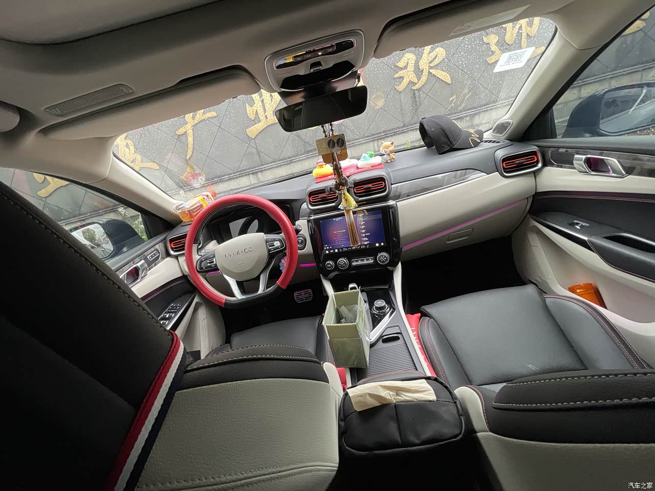 由于是选的是灰橙撞色,内饰米色和黑色撞色,红色缝线很彰显高级。除了米色有点难打理,但是还可接受。改了彩色氛围灯,原厂白色不够好,花钱改装了。