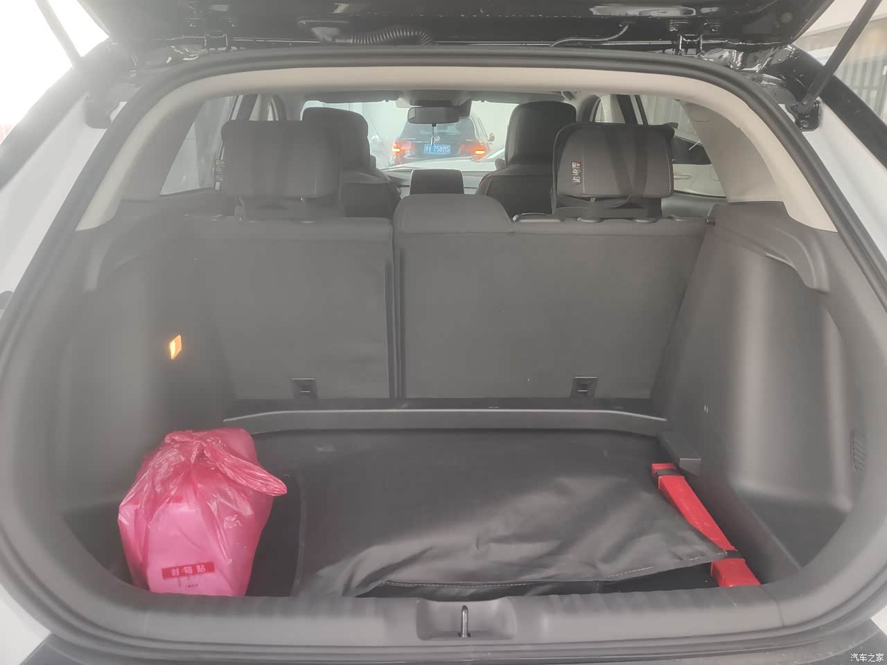 虽然只有4.3米的车身长度,车内空间还是比想象中好,在前排座椅调整到合适位置后,坐在第二排腿部空间大约有三指的距离,头部空间差不多有两拳的空间吧,所以坐在第二排也不会感觉太过拥挤。后备箱竖着放两个大号行李箱是比较轻松的,并且第二排座椅还支持放倒功能,后备箱的长度不长高度还是不错的,放置东西还是比较方便的。主驾驶附近的储物格还是比较丰富的,门把上放有个能放钥匙的储物格,下部分放水杯或者一些小杂物,自动大灯的下方有个行驶证储物格。中控部分机械档的后排是个可调节的水杯架下方是个隐藏的储物格,车内存放小东西是比较方便的。
