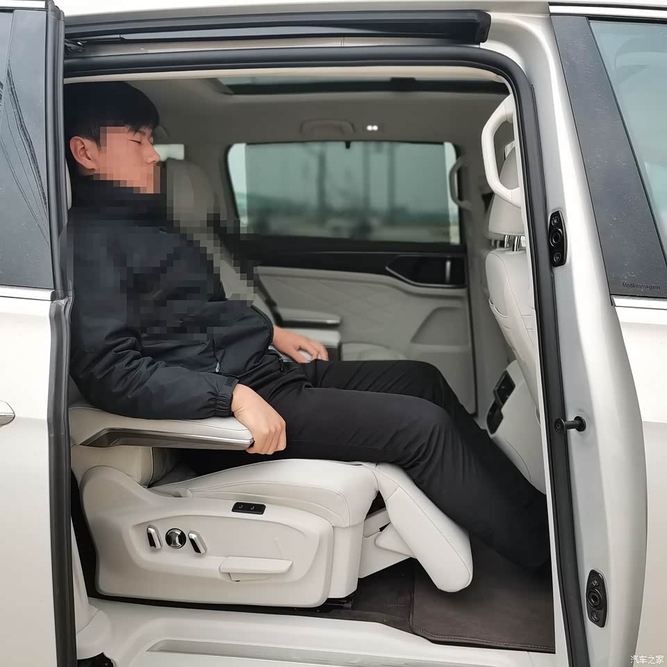 让我最满意的是第二排的贵宾座椅,座椅的话是全皮的,坐上去非常舒服,其次采用了一个类似于航空的头枕。腿的下面还设计的腿托,设计的很贴心,最关键是还带座椅加热,座椅通风的功能,加热通风的调节都是分别独立的,太贴心了,老爸老妈坐上去直夸奖我的买车子舒服.