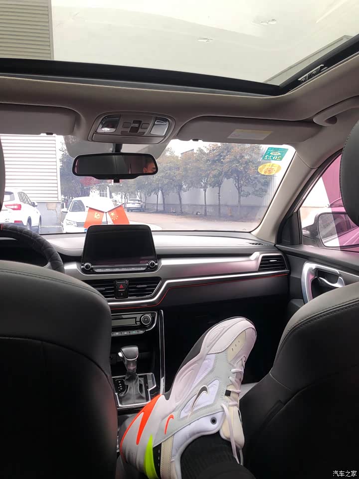 最满意的还是空间吧,身高180前后排空间很出色,后排纯平地板设计,做三个成年人没什么问题,配上全景天窗,整车内部空间很宽敞 其次就是外观吧,珍珠白车身,车顶纯黑色天窗,黑白搭配很融洽,白色经典也不过时