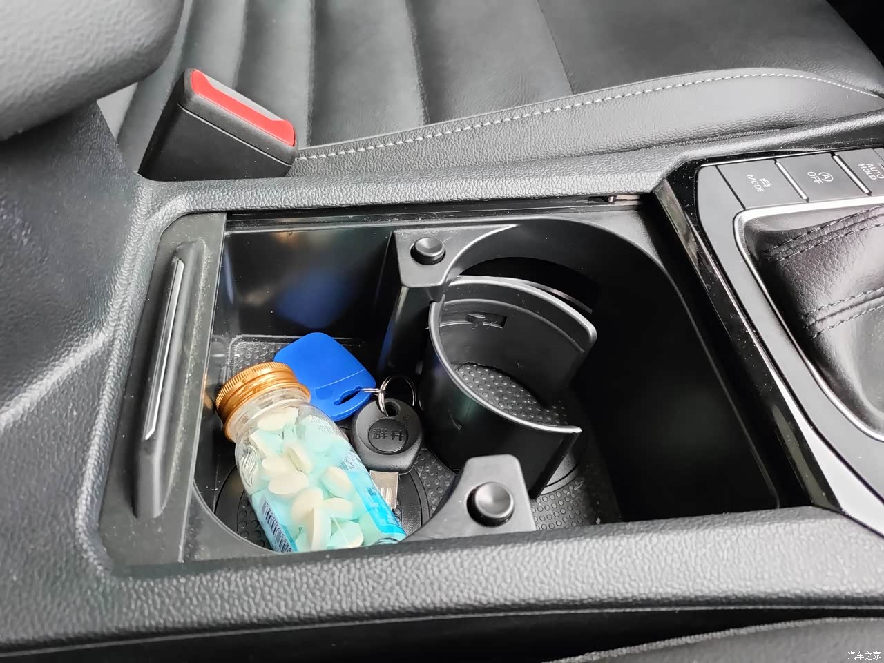 中控杯架比较智能,有个可以旋转打开的框架,放水杯还是很方便,开车的时候不用担心打翻了倒水出来。细节还是不错。