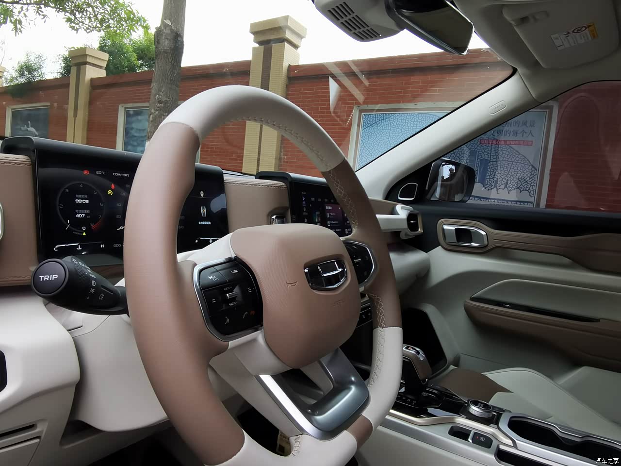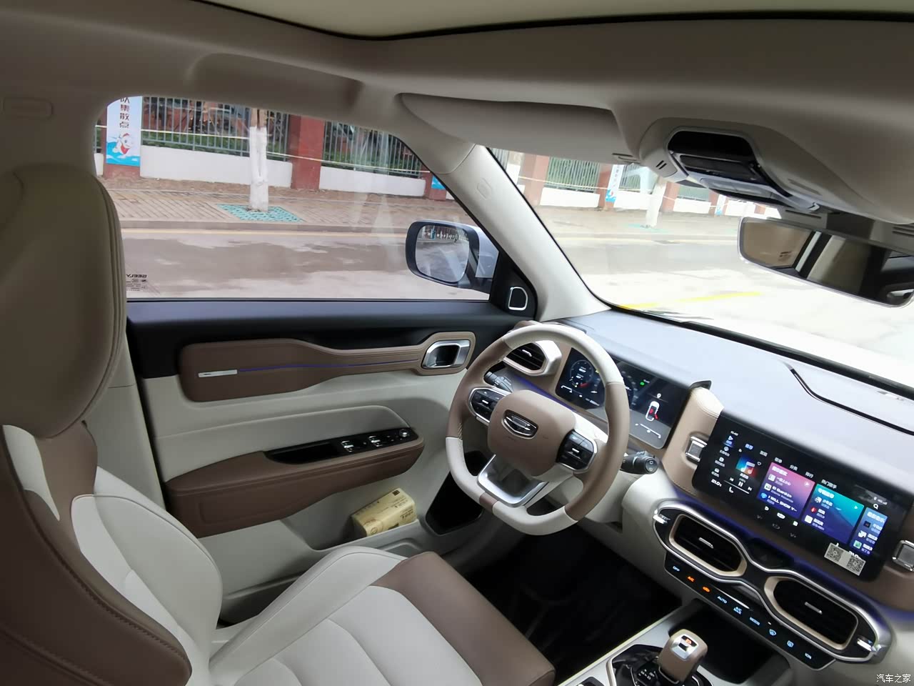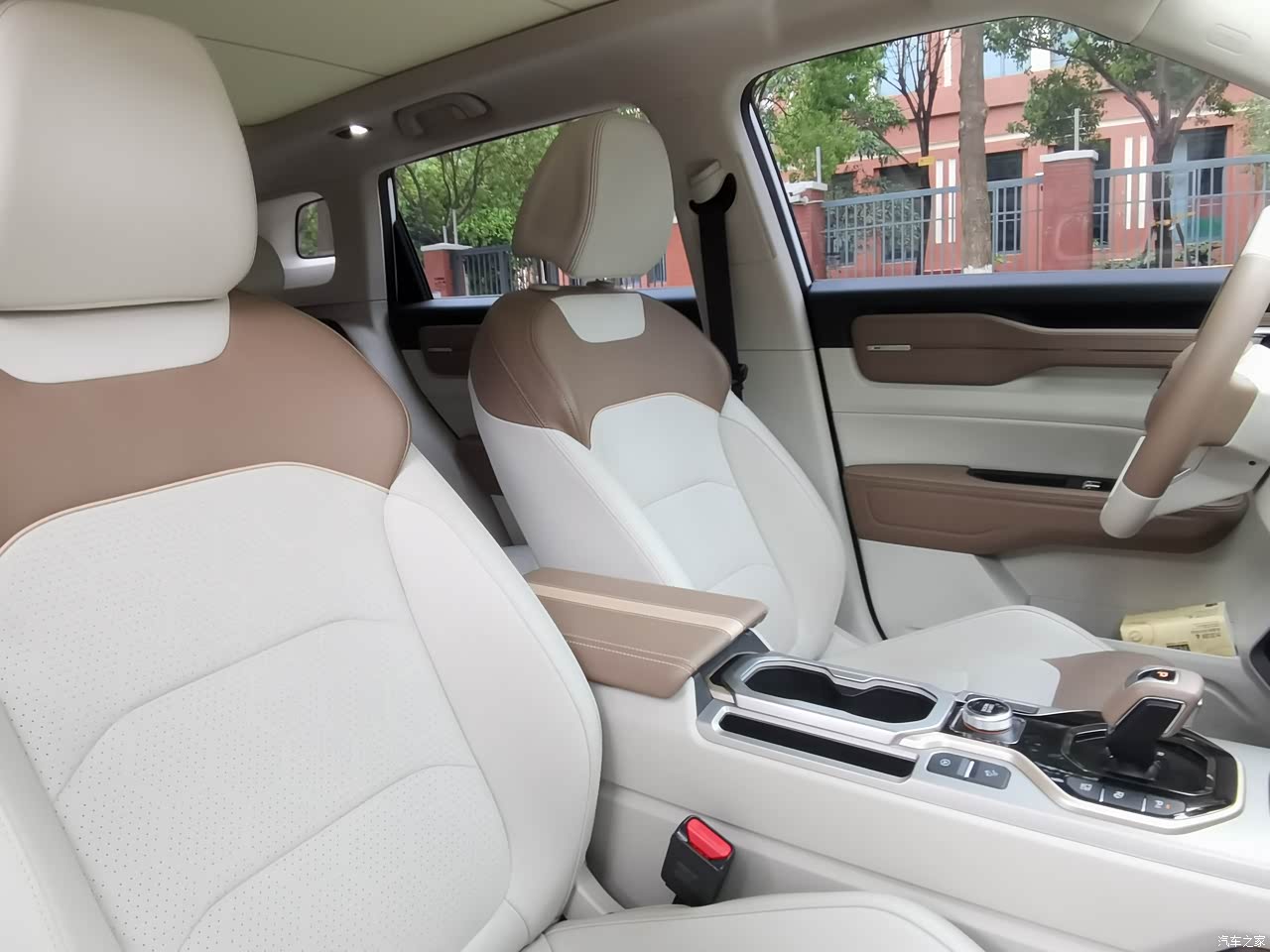内饰方面也很不错,选择棕色和白色相间的,和车辆的白色形成一个套装吧,看起来很舒服的给你家,简单纯净,非常棒的样子。中控设计的也很好,内饰的材质也很不错,爱了。
