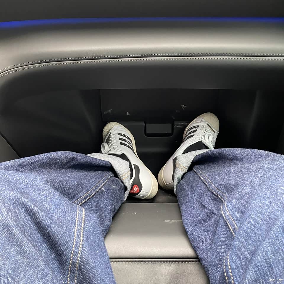 蔚来的内饰一直是大家称赞的一个地方。内饰设计比较时尚潮流,也有科技感。用料方面比较扎实,我没有选真皮,但是合成皮革摸起来手感也很不错,选择超纤溶顶棚有点类似翻毛皮的手感,很细腻。还有nomi作为点睛之笔让内饰看起来比较精致。