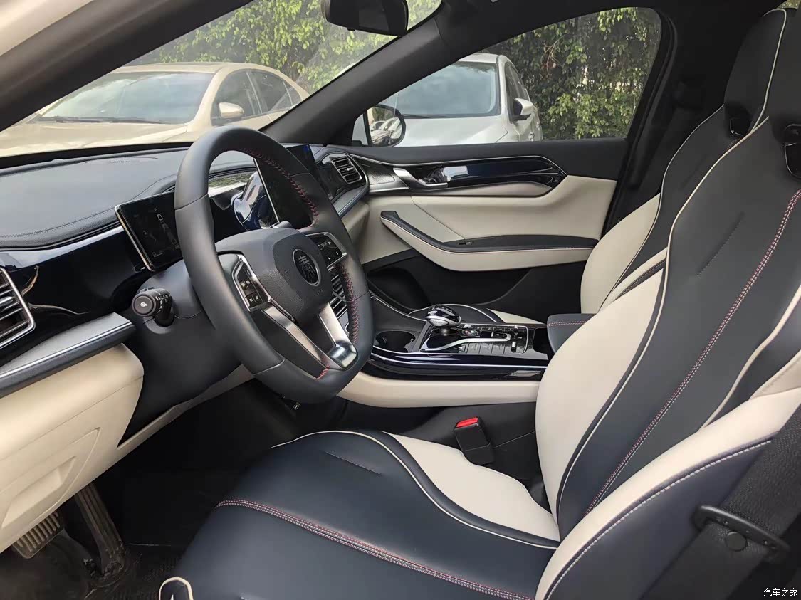 内饰的设计上我感觉比较偏科技感,屏幕的设计有一点清晰,很新颖,但是中控仪表盘的设计感觉小气了很多,看到了忍不住想吐槽一下。座椅的设计有一种外星人ET感觉。配色的搭配让整个车充满了科技感,但是车的仪表盘太小了,拉低了整个车的档次。