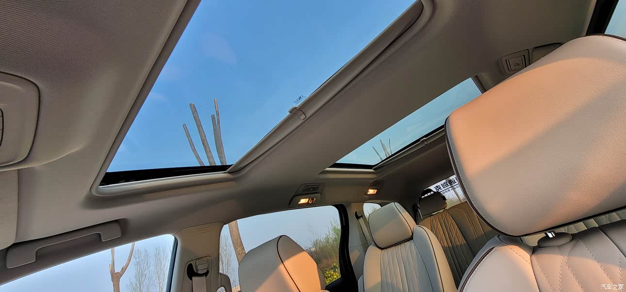 空间必须是好评,也是我买这款车的一个最大原因。整车高度1m8出头,长度5m2多,所以说内部空间特别大。加上一个3m多的轴距。前排,第二排,第三排乘坐空间都相当不错,而且头部空间特别宽裕。这点儿是个好评,好多车头部空间不好,做起来有点儿压抑。还有就是这款车有一个很大的后备箱,一家人坐满七个人之后。后备箱再拉行李也完全够用。尤其是车内部的一个高度比较高,车子停下来,小孩儿基本上可以站起来。跑长途的时候,坐在第二排,第三排也不会特别压抑。