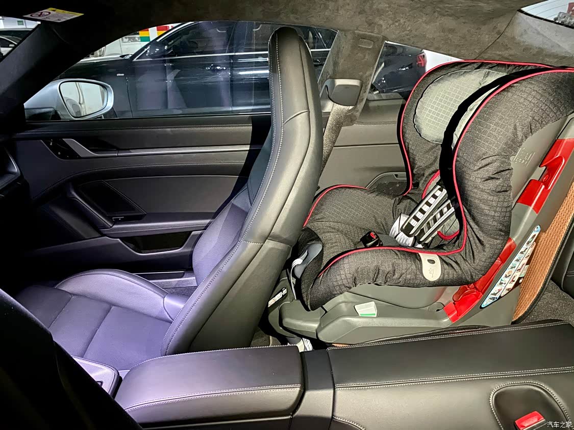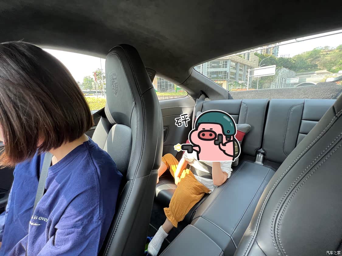 在小跑车中空间还OK,后座可偶尔坐小朋友,非常实用。前备箱也能放下两个小登机箱。