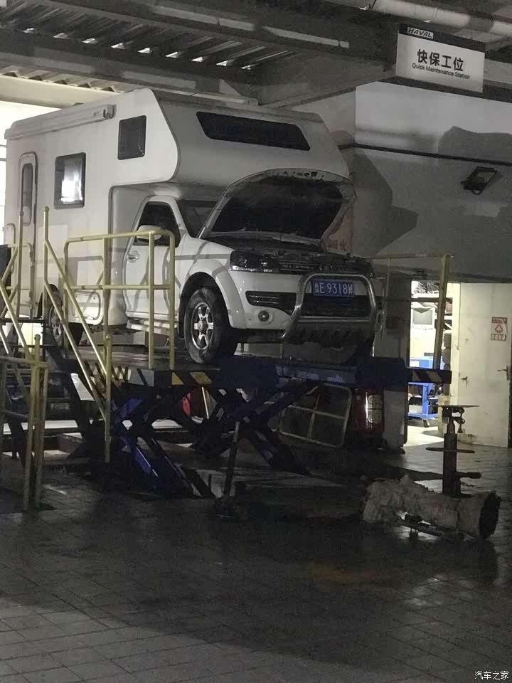 基本是按照使用手册进行保养,由于车身高度3.3米,只能在有大型升台架或检修地道的4S店做保养。
